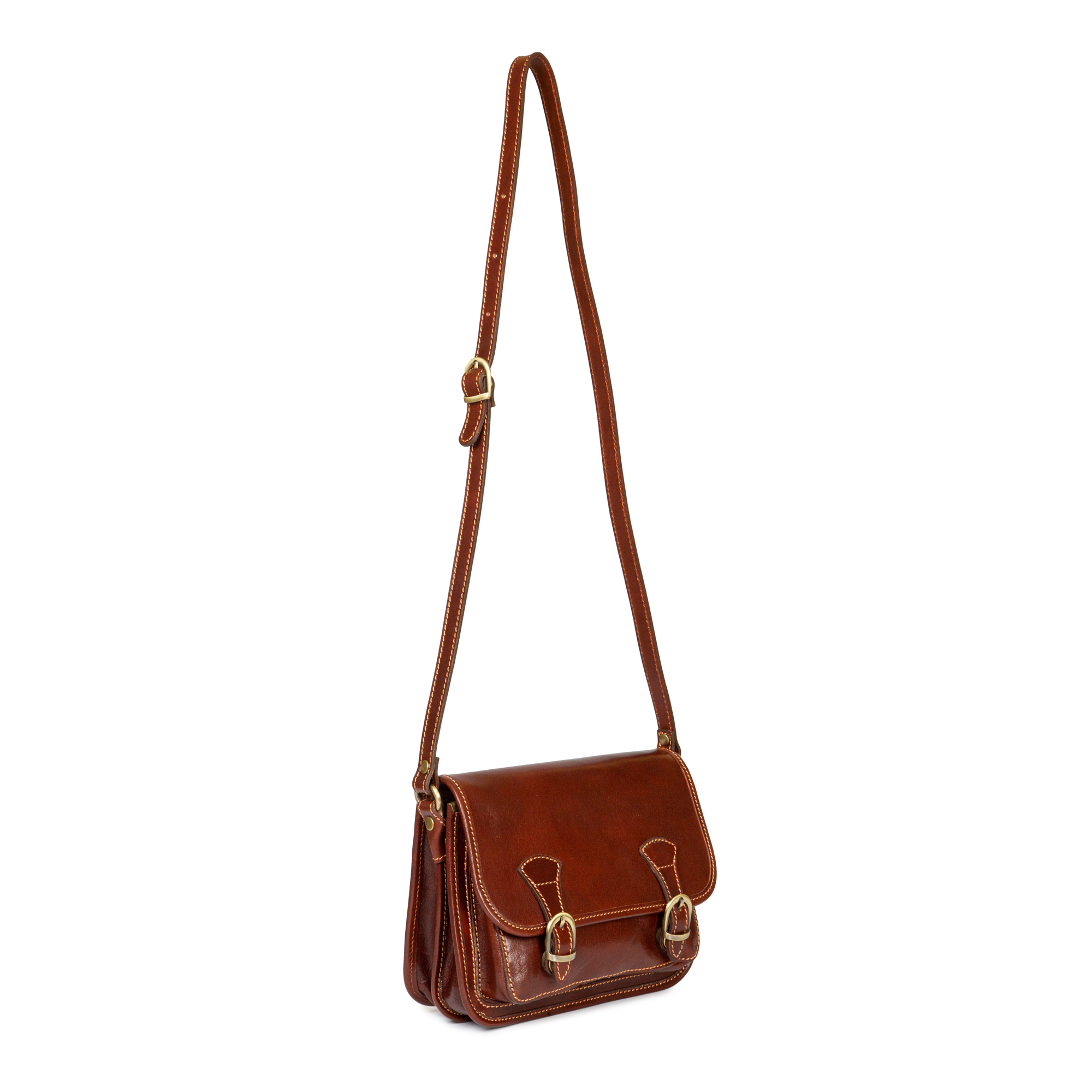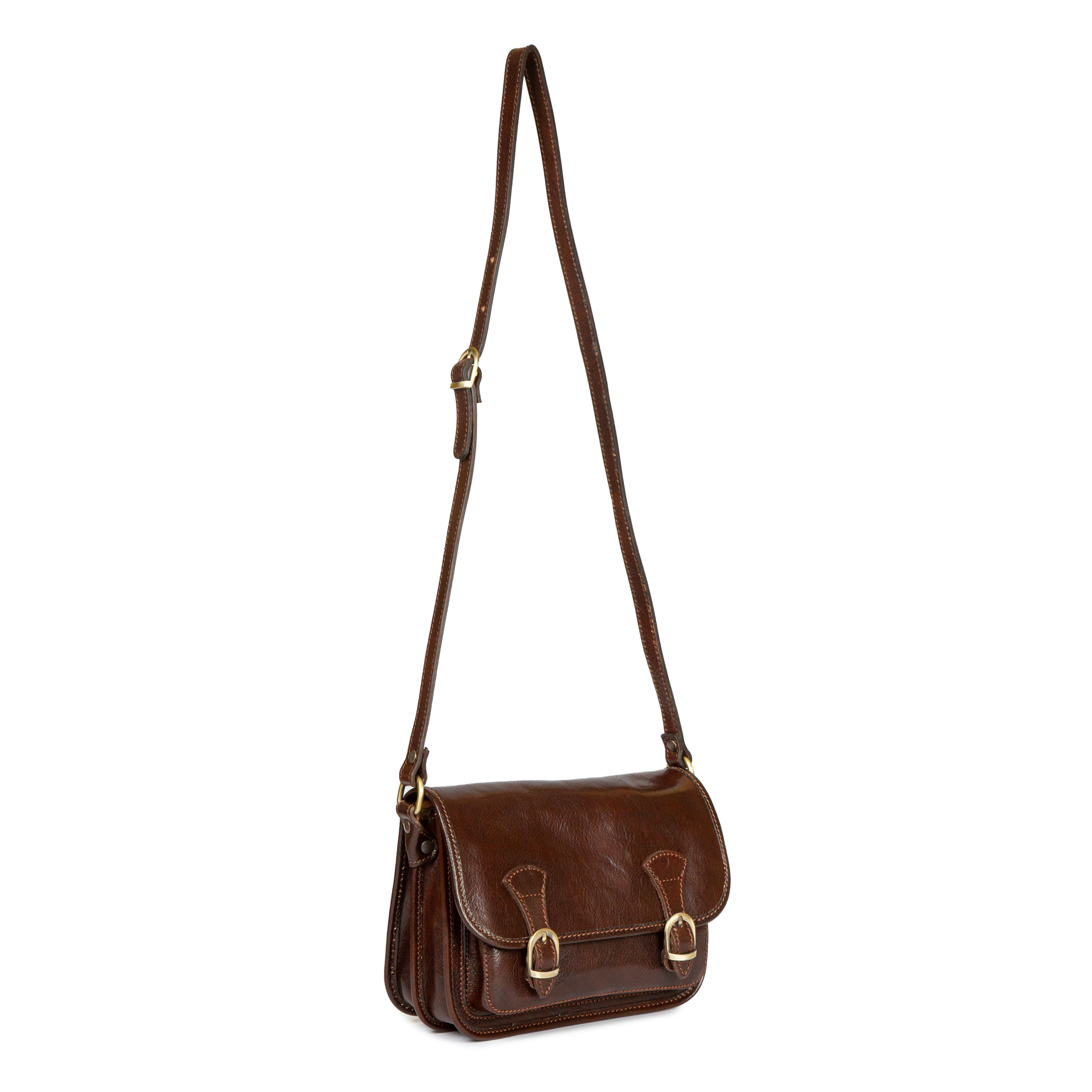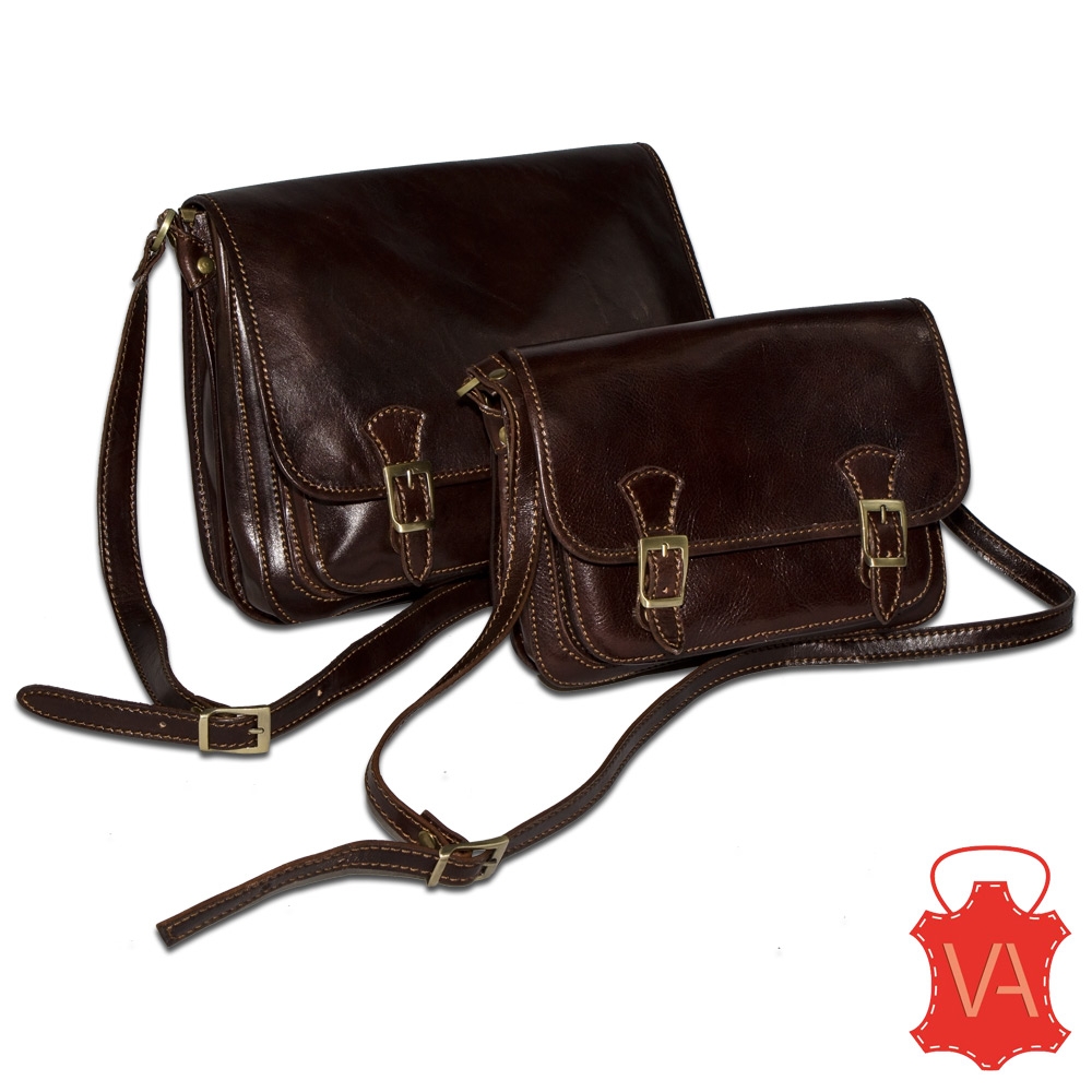 Stupenda borsa in cuoio con tracolla lunga stile The Bridge, sfoderata con 2 divisori interni e tasca frontale sotto pattina. Chiusura con 2 calamite nascoste dalle fibbie ottonate in vista che conferiscono uno stile unico. Disponibile in 2 misure adatte a tutte gli usi